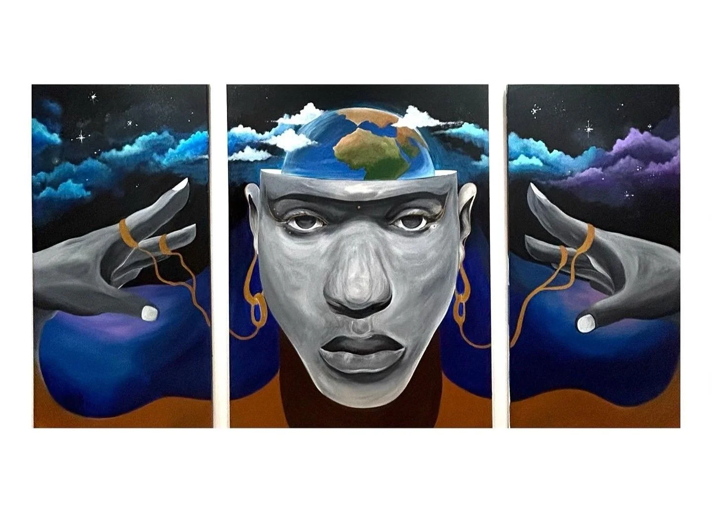 Join us this THURSDAY, NOVEMBER 9th, from 6.00 - 9.00pm @114w71starts and dive into Kaimi Glover's [@createkaimi] visionary world, explore the intricate universe of Sheanni Ra, [@sheanni.ra] and experience the emotional depth of Dennis Chima's [@dennischimankpaofficial_] beautiful portraits. The RENAISSANCE exhibition by AfricanByArt features the work of three incredibly talented artists.